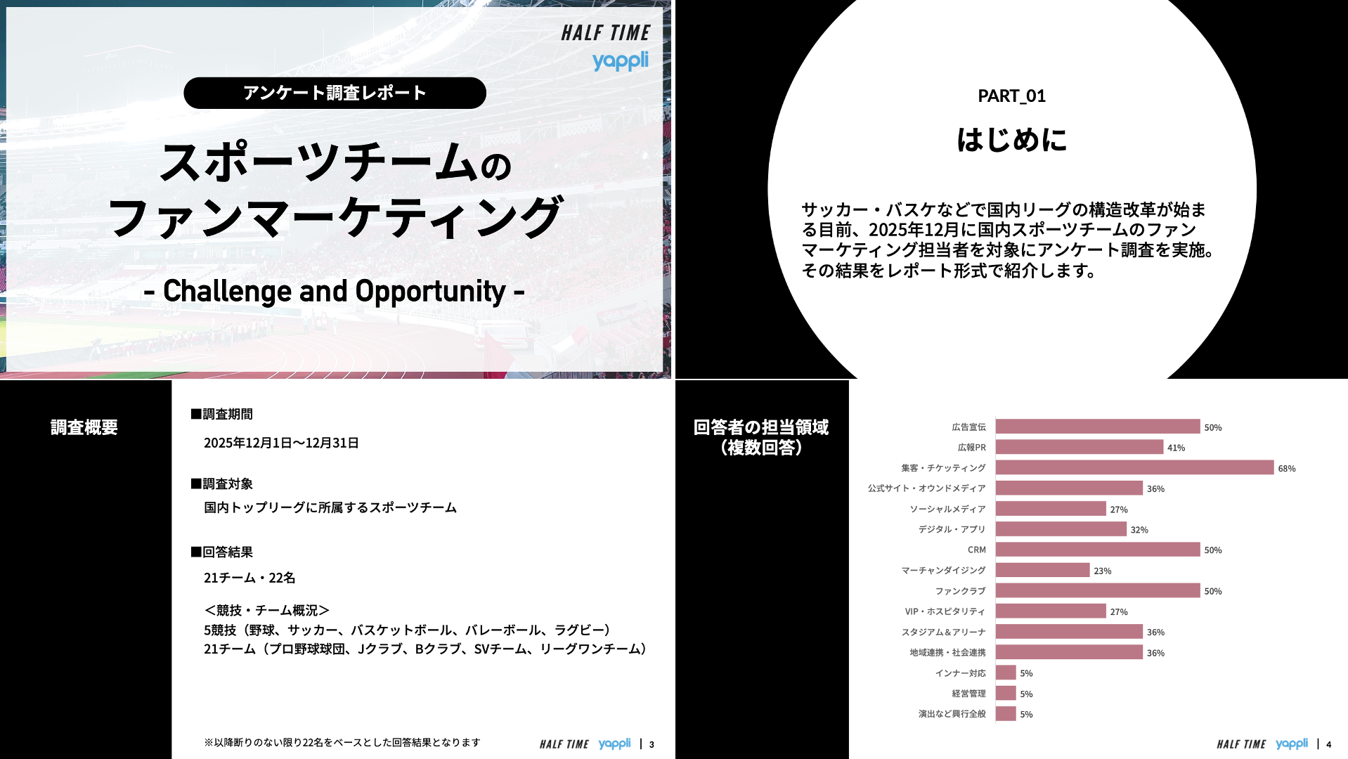 HALF TIME株式会社では、この度、株式会社ヤプリと共同で実施した「スポーツチームのファンマーケティング」に関する調査レポートを発行しました。
